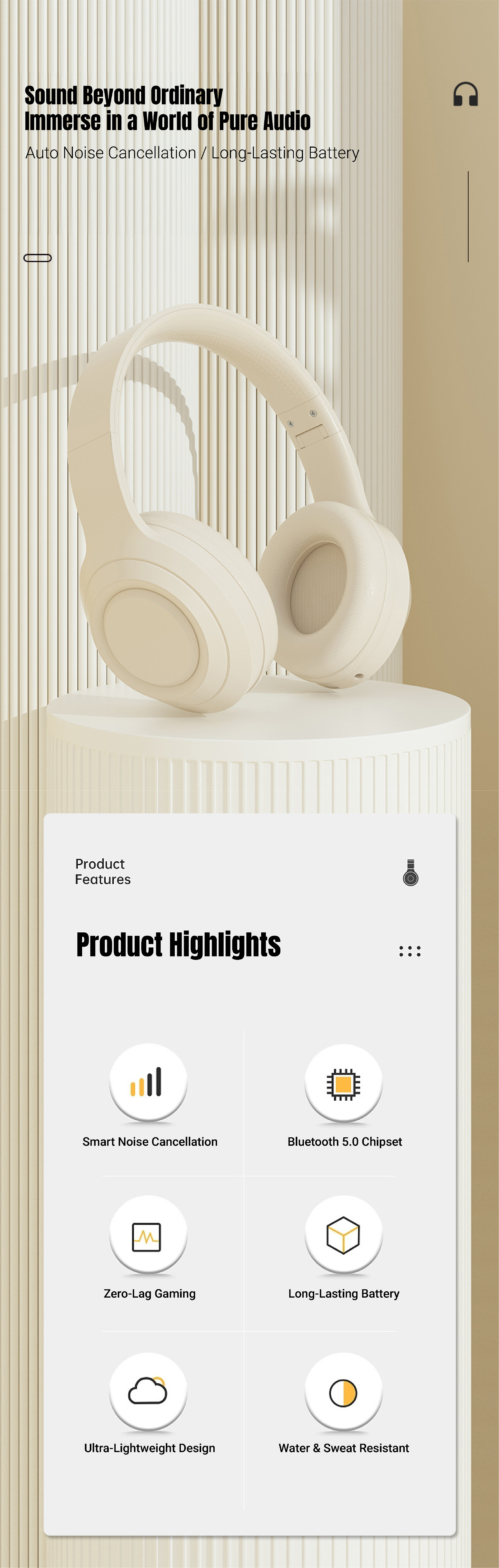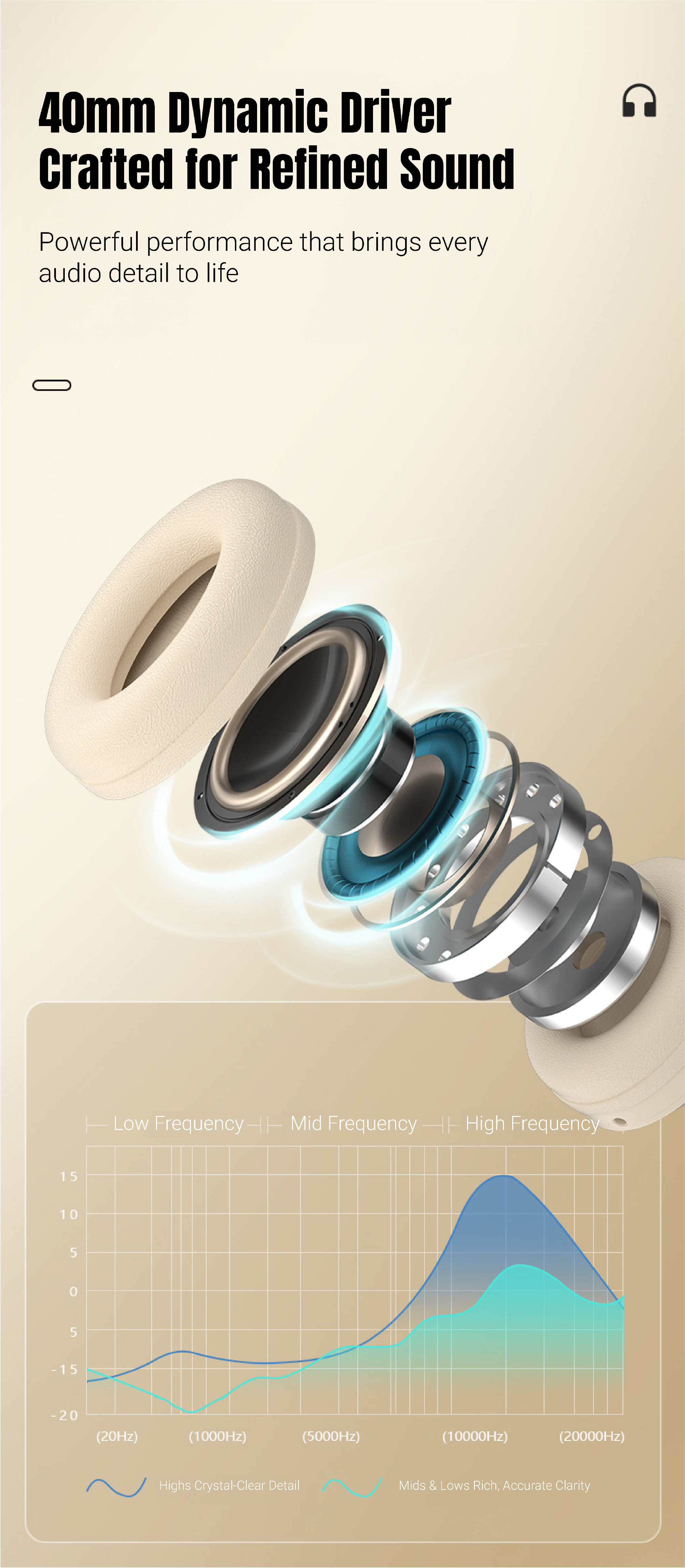 DR58 Bluetooth Headphones Wireless with Long Battery Life, Noise Cancelling