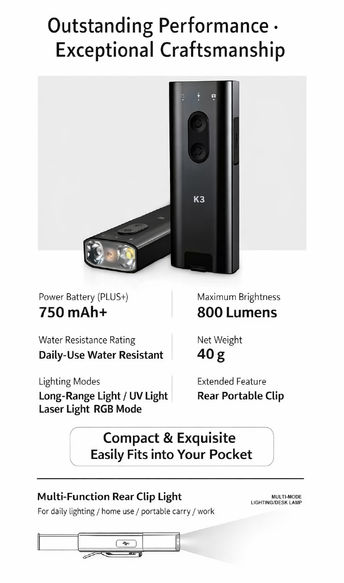 K3 Mini Portable Multifunctional Flashlight – Long Battery Life