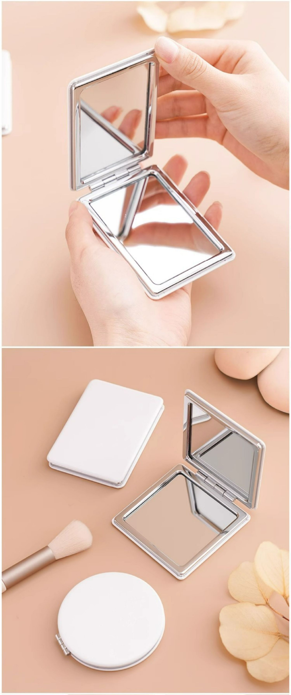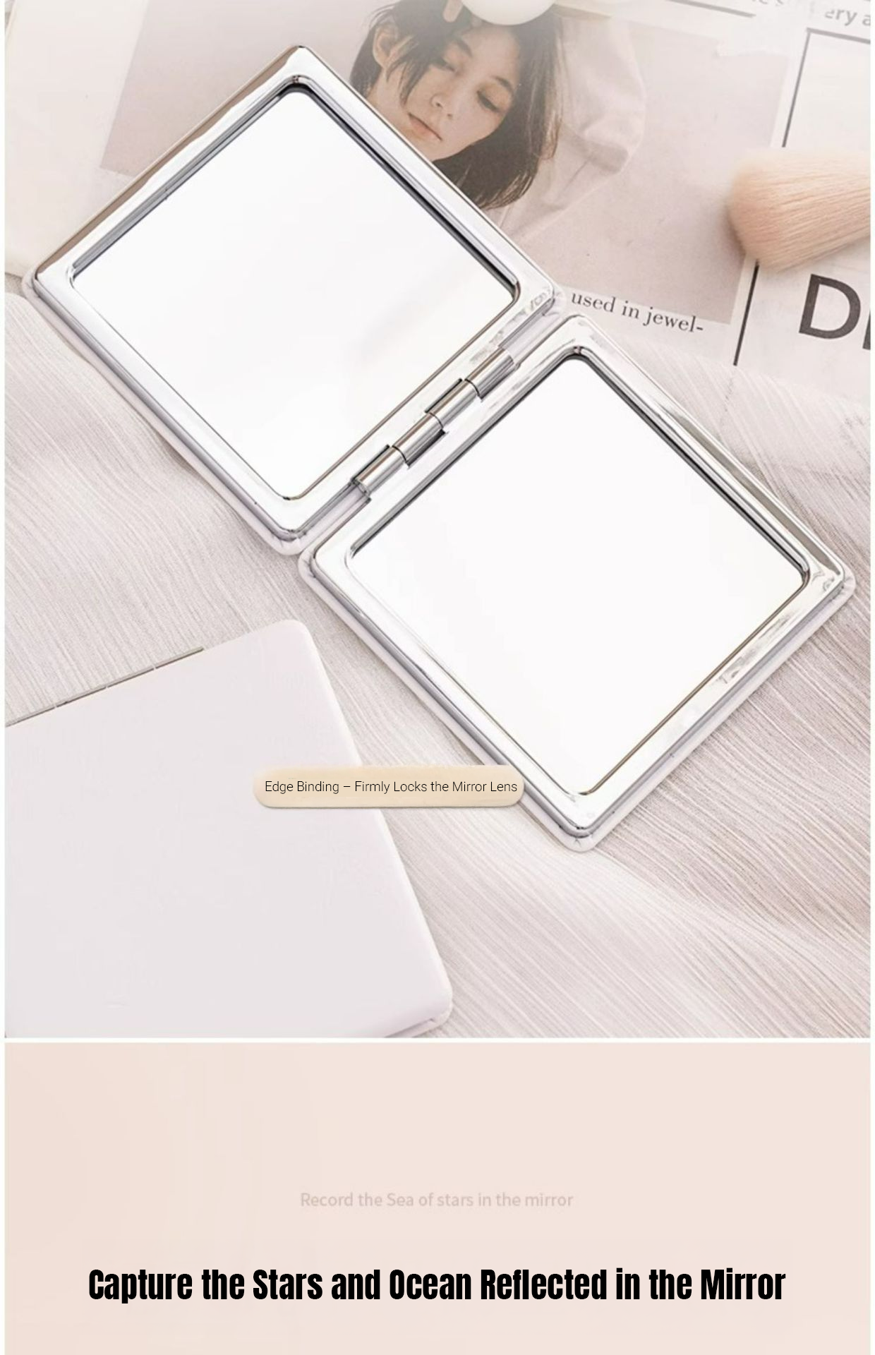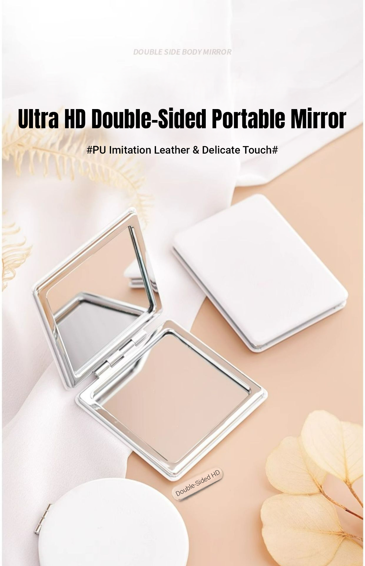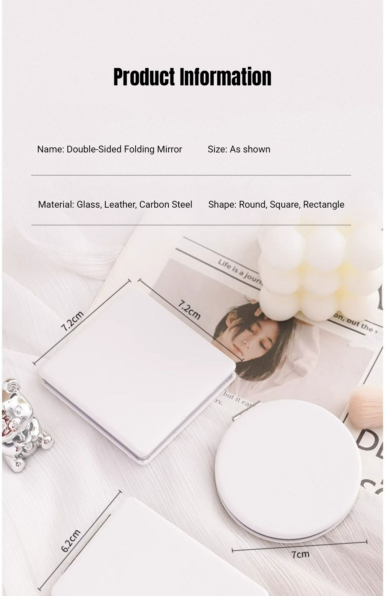 Pocket Folding Mirror Double-Sided Compact PU Makeup Mirror, Portable
