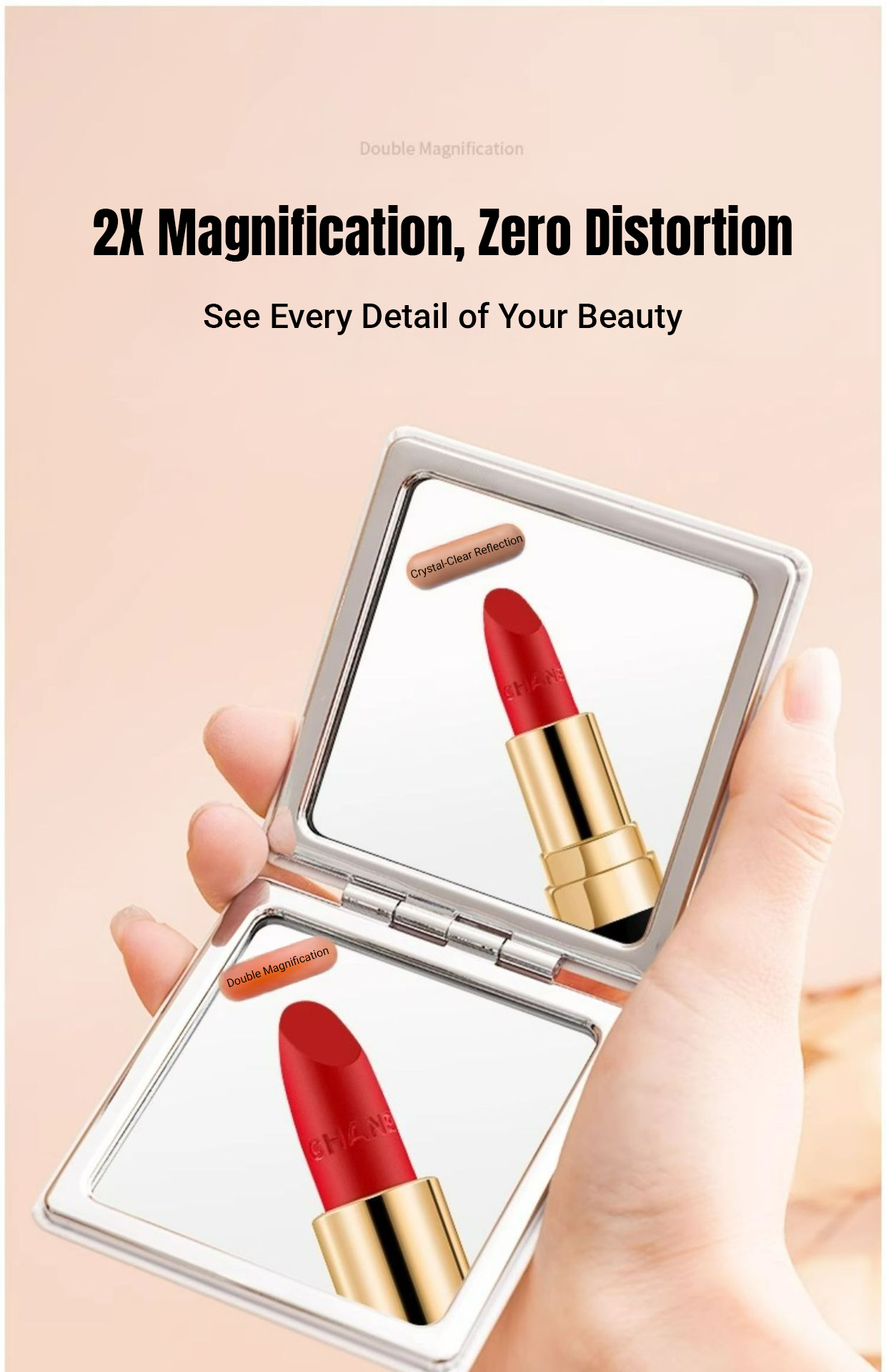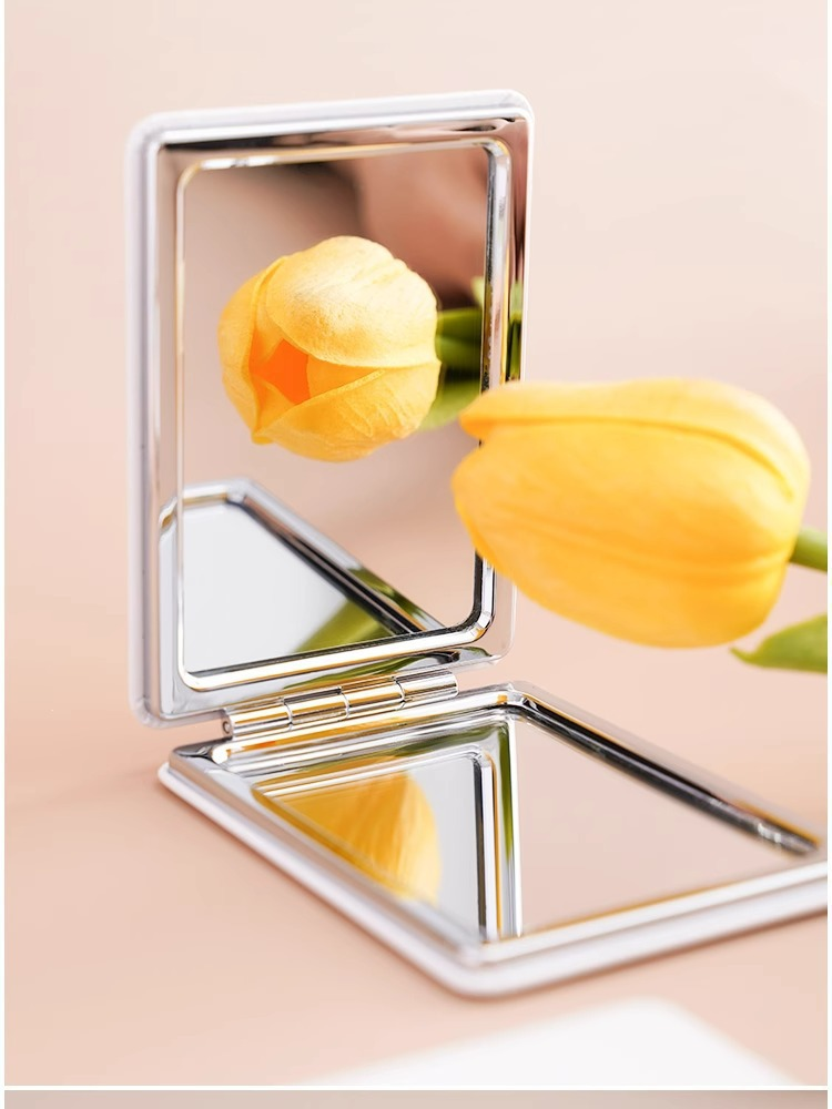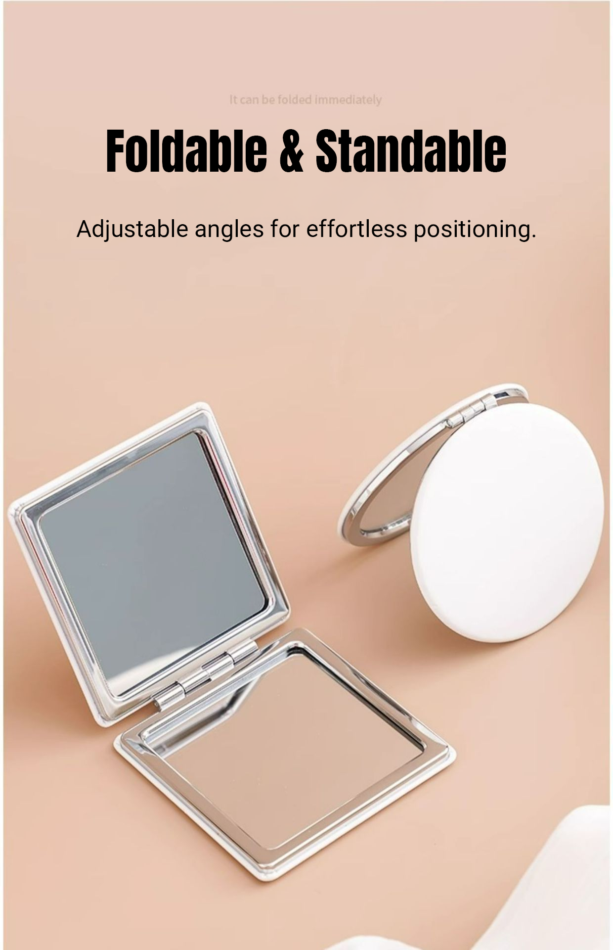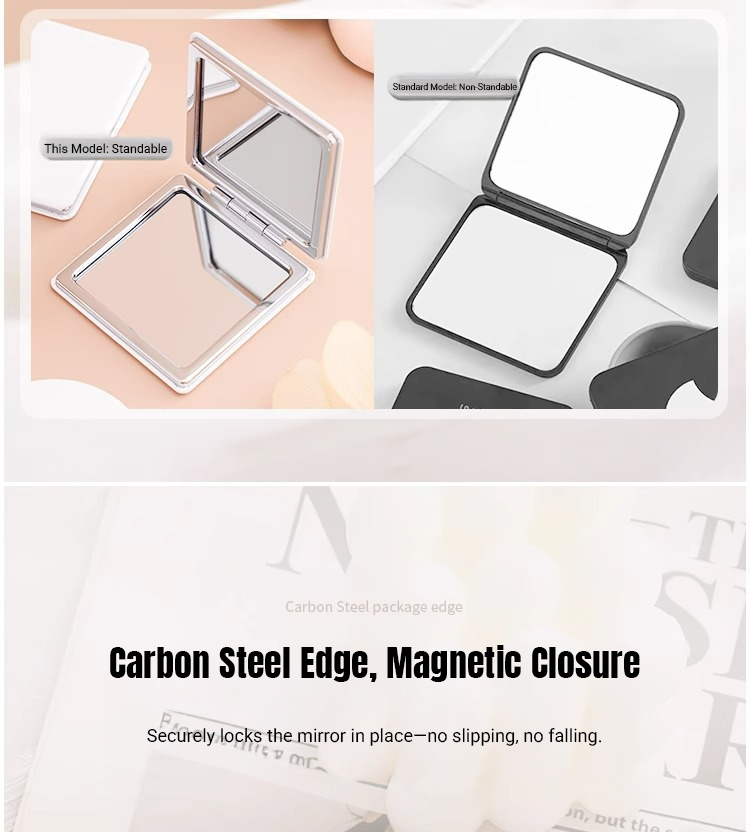 Pocket Folding Mirror Double-Sided Compact PU Makeup Mirror, Portable