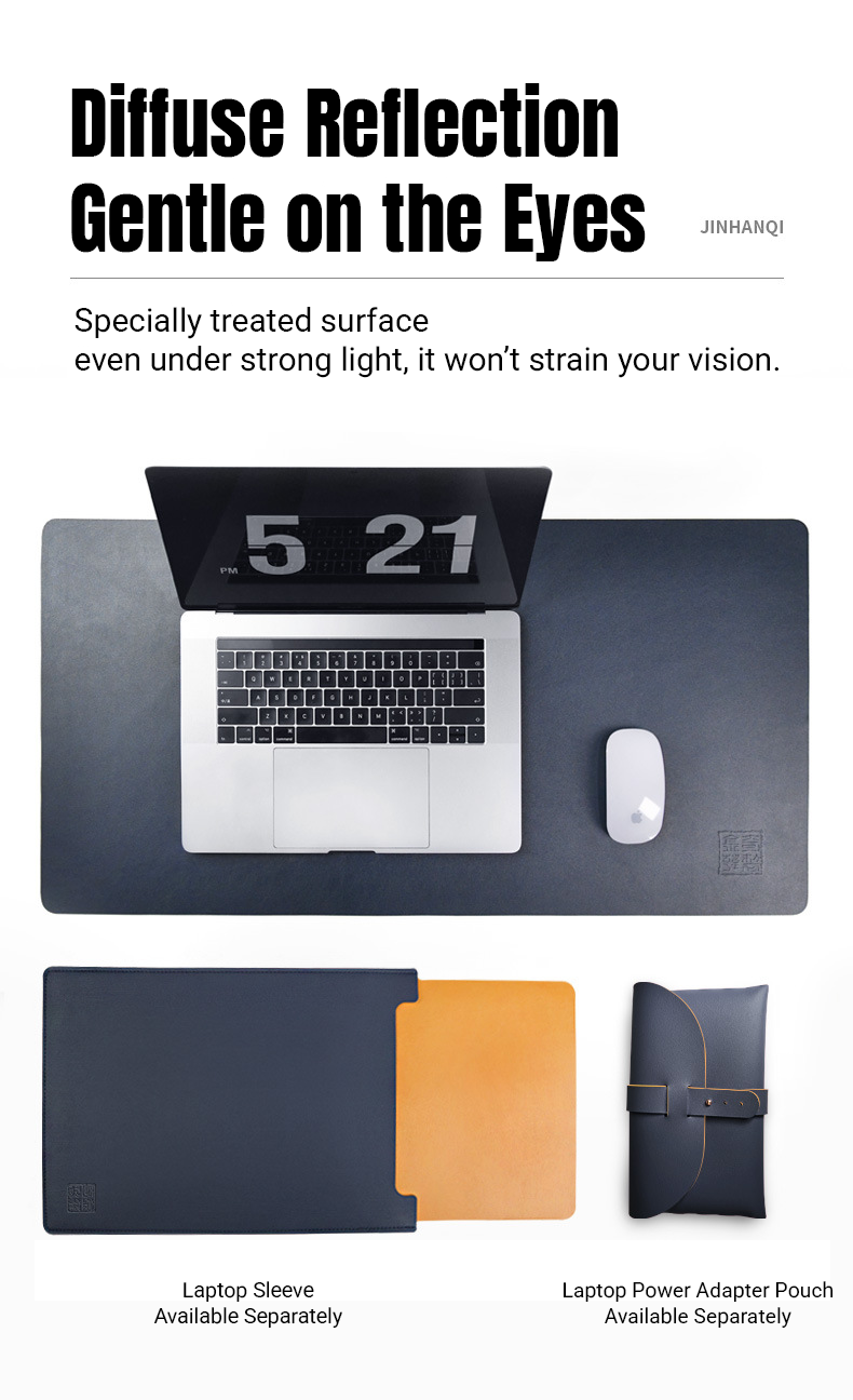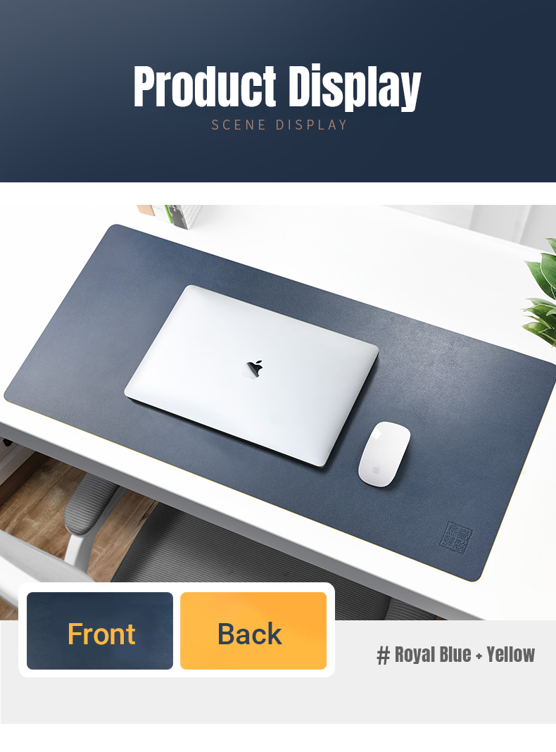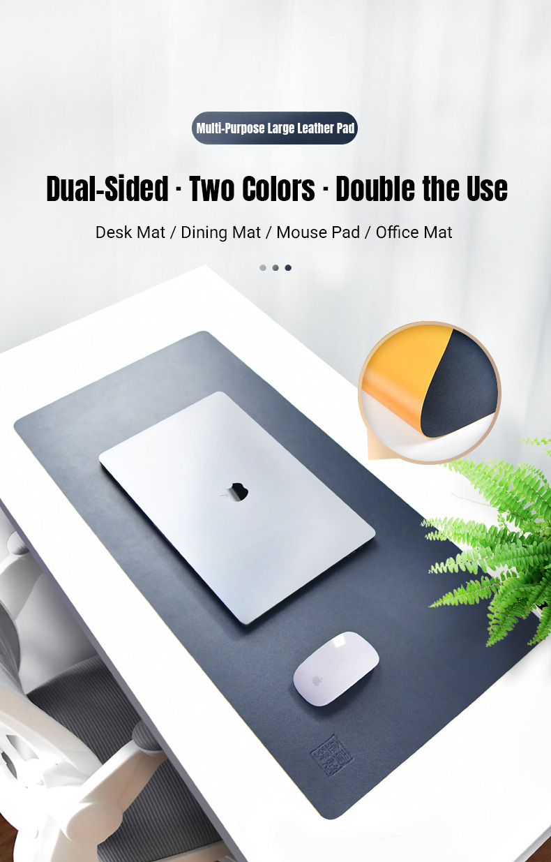 PU Leather Desk Mat Large Waterproof Keyboard & Mouse Pad, Solid Color, Double-Sided