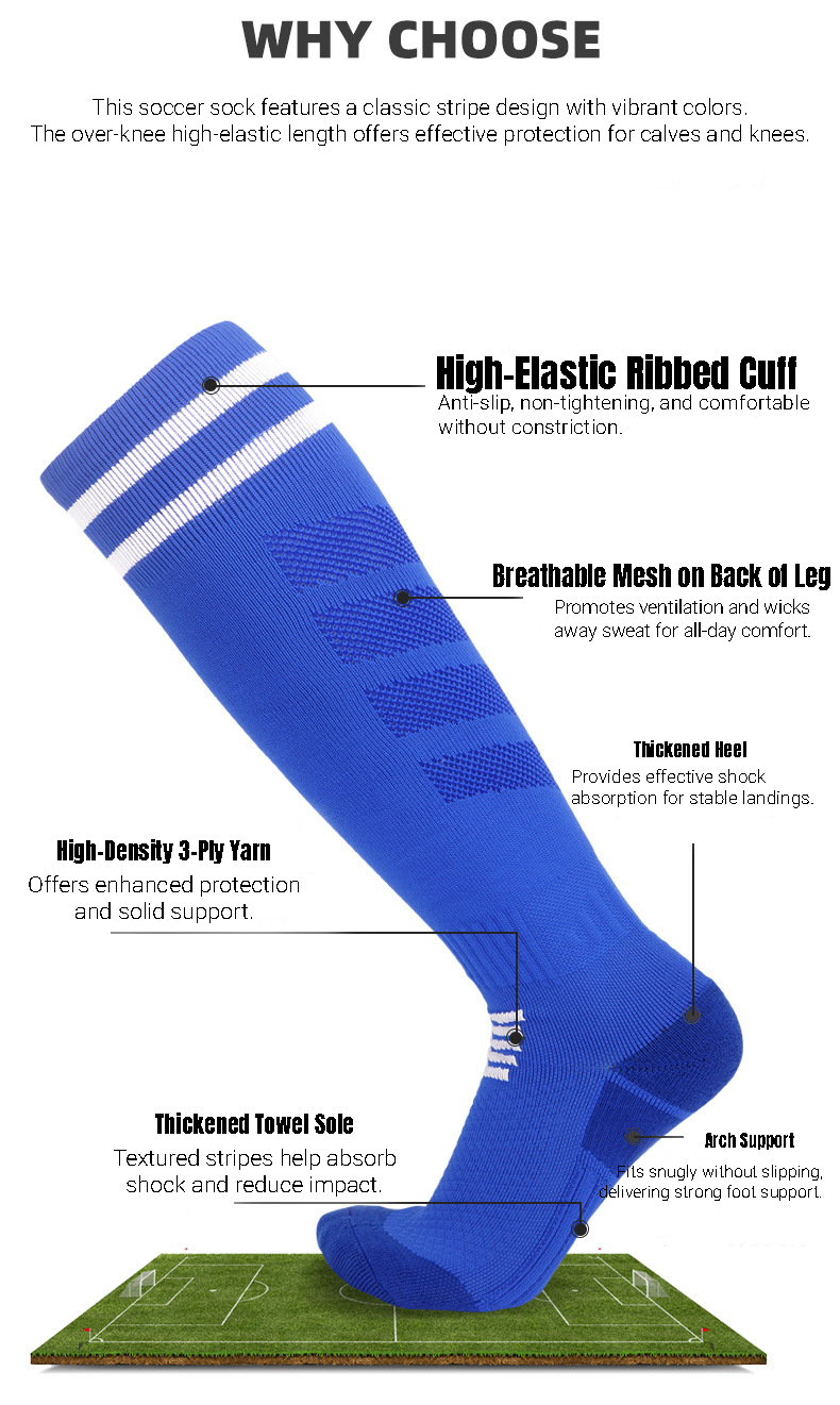 Sports Football Socks, Long Tube, Cushioned, Sweat-Absorbent, Anti-Slip, Durable